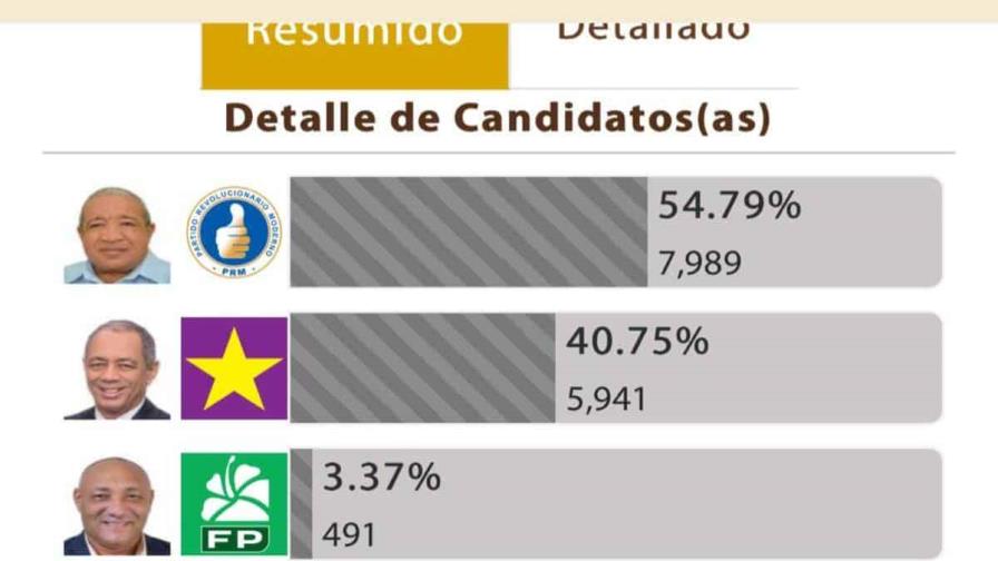 Con el 54.79 % de los votos computados, la Junta Central Electoral (JCE), en su primer boletín sale ventajoso el actual alcalde Amado de la Cruz, del Partido Revolucionario Moderno (PRM), en la provincia de Hato Mayor.