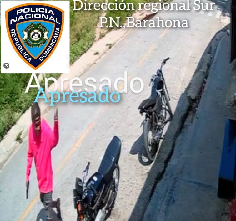 Santo Domingo.-Agentes policiales, pertenecientes a la Dirección Central de Investigación (DICRIM), apresaron un hombre que fue hecho viral en las redes sociales al ser captado en video portando un arma de fuego y retando de manera agresiva a otro a que saliera de una vivienda en la que se encontraba para enfrentarlo, en un hecho registrado en la provincia de Barahona.