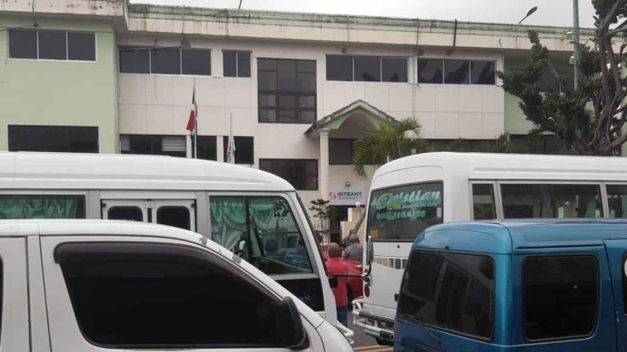 Los manifestantes parquearon de manera sorpresiva minibuses y autobuses frente a las oficinas del Intrant, lo que motivó la presencia de agentes de la Policía Nacional.