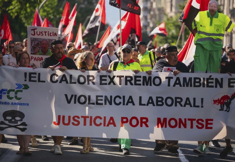 Cientos de limpiadores y ciudadanos preocupados marcharon por el centro de Barcelona la semana pasada para protestar por la muerte de Montse Aguilar, una barrendera de 51 años que trabajó incluso cuando los termómetros de la ciudad batían récords en junio.