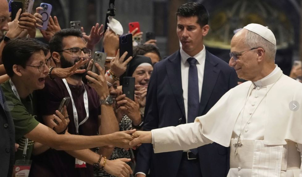 Leo agradeció a los jóvenes por usar sus plataformas digitales para difundir la fe y posó con entusiasmo para selfis.