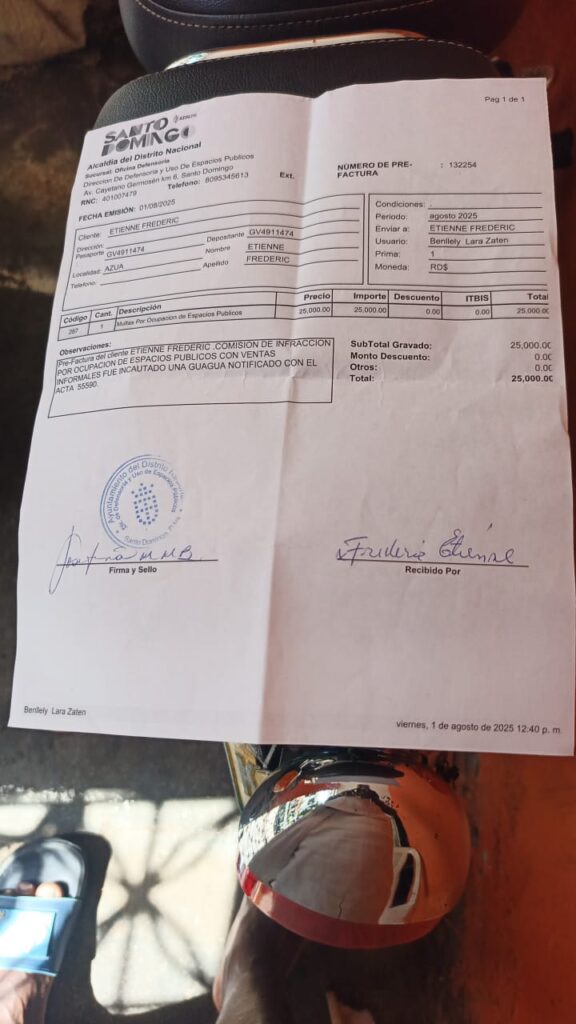 Por tratarse de un nacional haitiano,la Alcaldesa del Distrito Nacional y candidata presidencial del Partido Revolucionario Moderno(PRM) Carolina Mejía, impone multa de 25 mil pesos,a un padre de familia que se ganaba la vida con una “fritura móvil” en el Ensanche Naco Distrito Nacional.