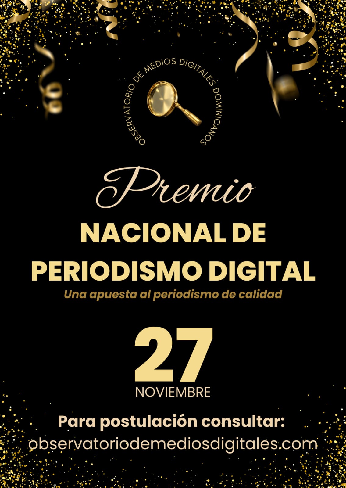 Acevedo puntualizó que como cada año, el Observatorio de Medios Digitales Dominicanos otorgará el galardón denominado “Gran Premio Nacional de Periodismo Digital”, el cual será entregado a un periodista que cuente con amplia trayectoria en medios digitales, quien será reconocido por sus aportes al sector.