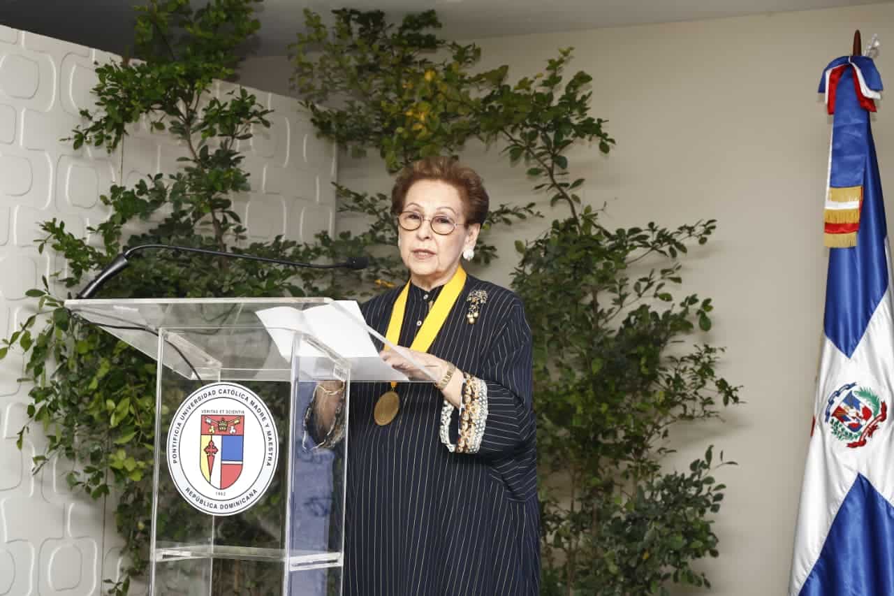 La Pontificia Universidad Católica Madre y Maestra (Pucmm) otorgó este jueves a Xiomara Dájer de Menéndez la medalla de honor Mater et Magistra en Trabajo Social, recientemente creada para reconocer a quienes, con su labor humanista, impactan positivamente a la sociedad.