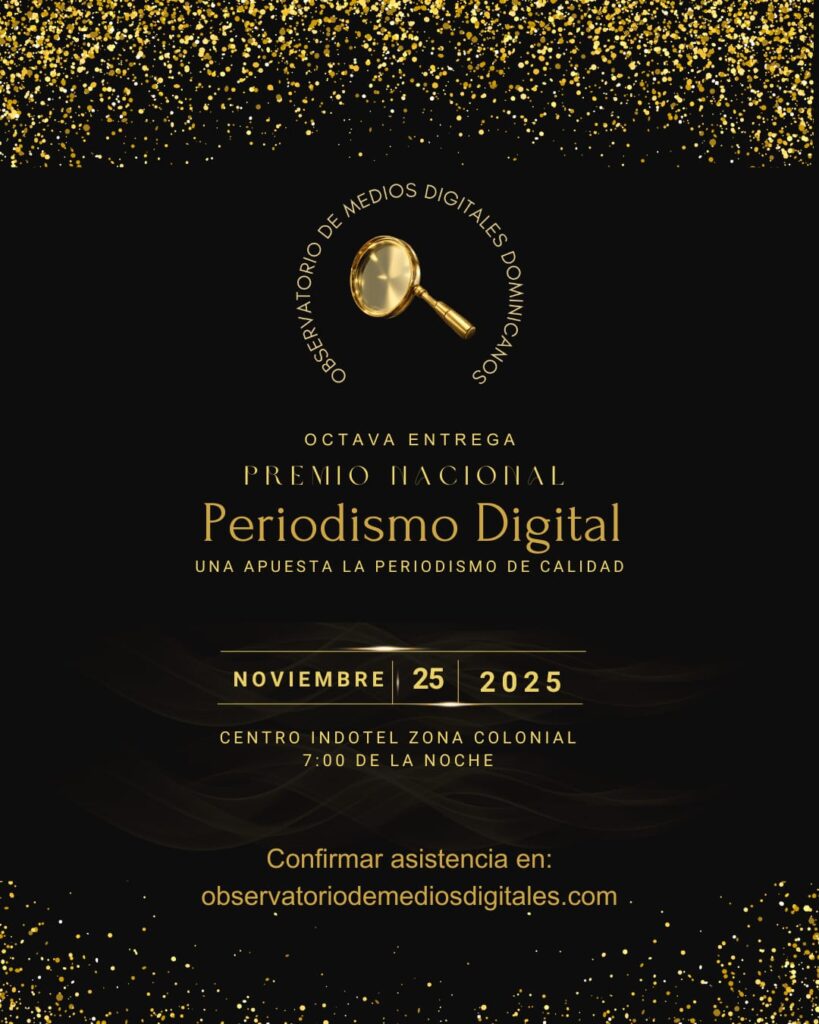 El Observatorio de Medios Digitales Dominicanos anunció este sábado los nominados de la octava versión del Premio Nacional de Periodismo Digital 2025, una iniciativa respaldada por el Banco Popular y el Instituto Dominicano de las Telecomunicaciones (INDOTEL).