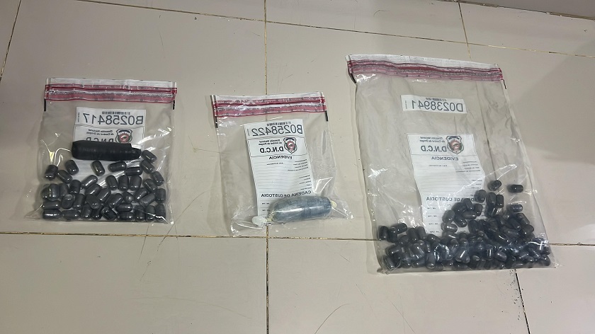 “La mujer de 22 años llevaba 40 bolsitas de la presunta droga adheridas en los brasieres, 97 envoltorios en el estómago, así como una porción en la vagina, para un total de 138 bolsitas, con un peso aproximado de un kilo y 341 gramos”.