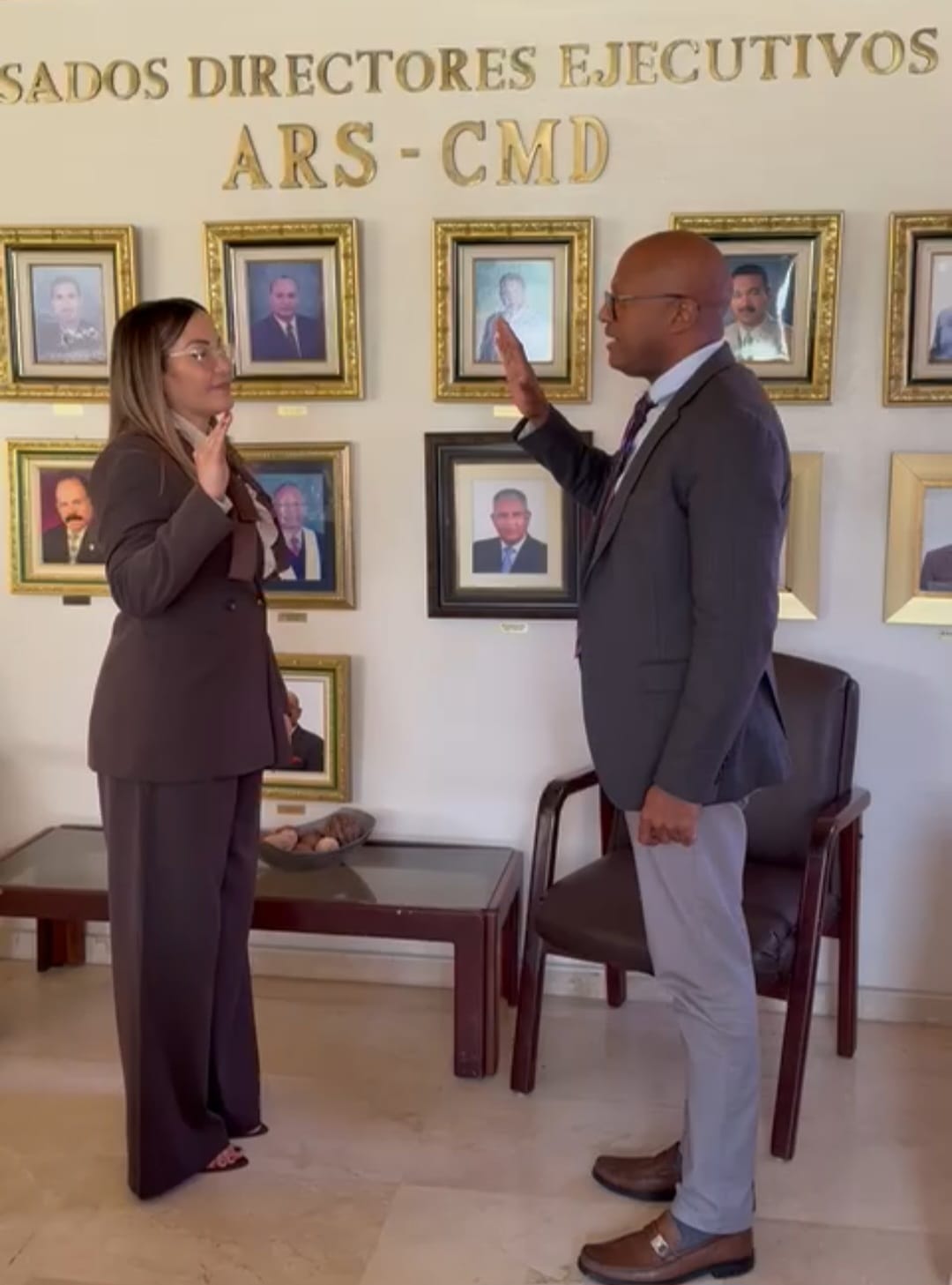 La Junta Directiva Nacional del CMD y del Consejo de Administración de la ARS CMD, el Dr. Luis Peña Nuñez presidente del Colegio Médico Dominicano (CMD), juramento a la Dra Mirna Esther Fonfrias como la nueva directora ejecutiva de la ARS CMD.