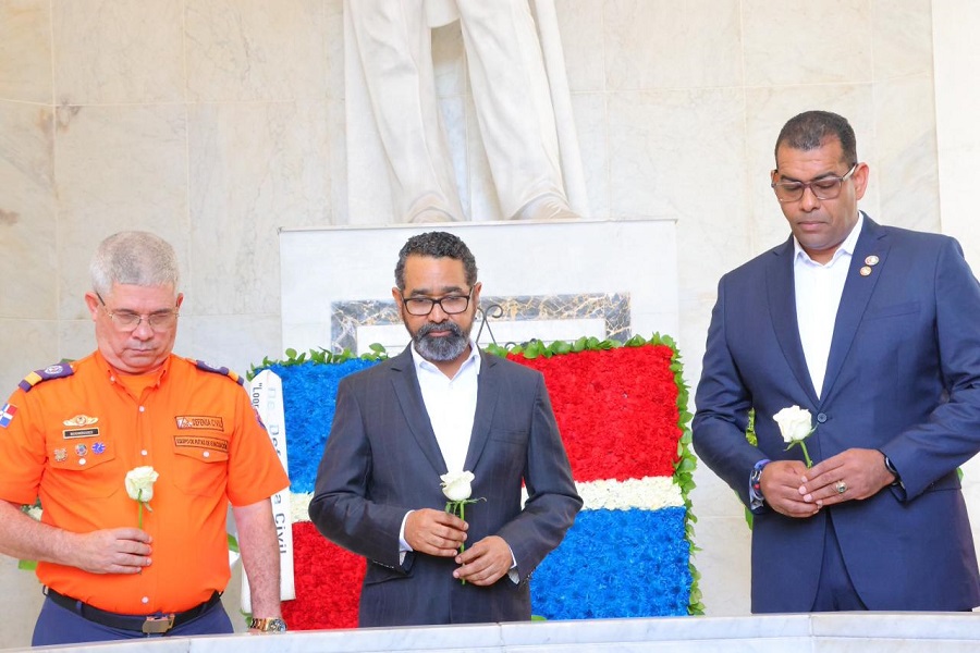 Con motivo de la conmemoración del 182 aniversario de la Independencia Nacional, la Defensa Civil depositó este martes una ofrenda floral en el Altar de la Patria, en honor a los Padres Fundadores.
